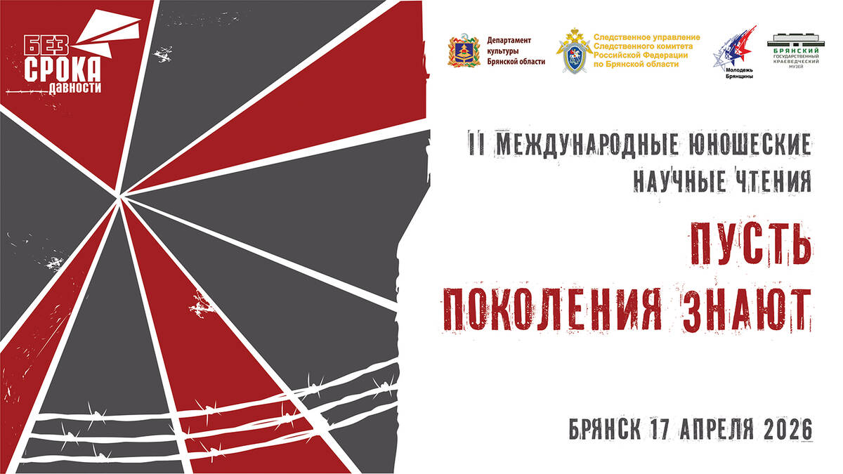 17 апреля в брянском краеведческом музее состоятся международные юношеские научные чтения «Пусть поколения знают». Регистрация участников начнётся в 10:00, начало — в 11:00.