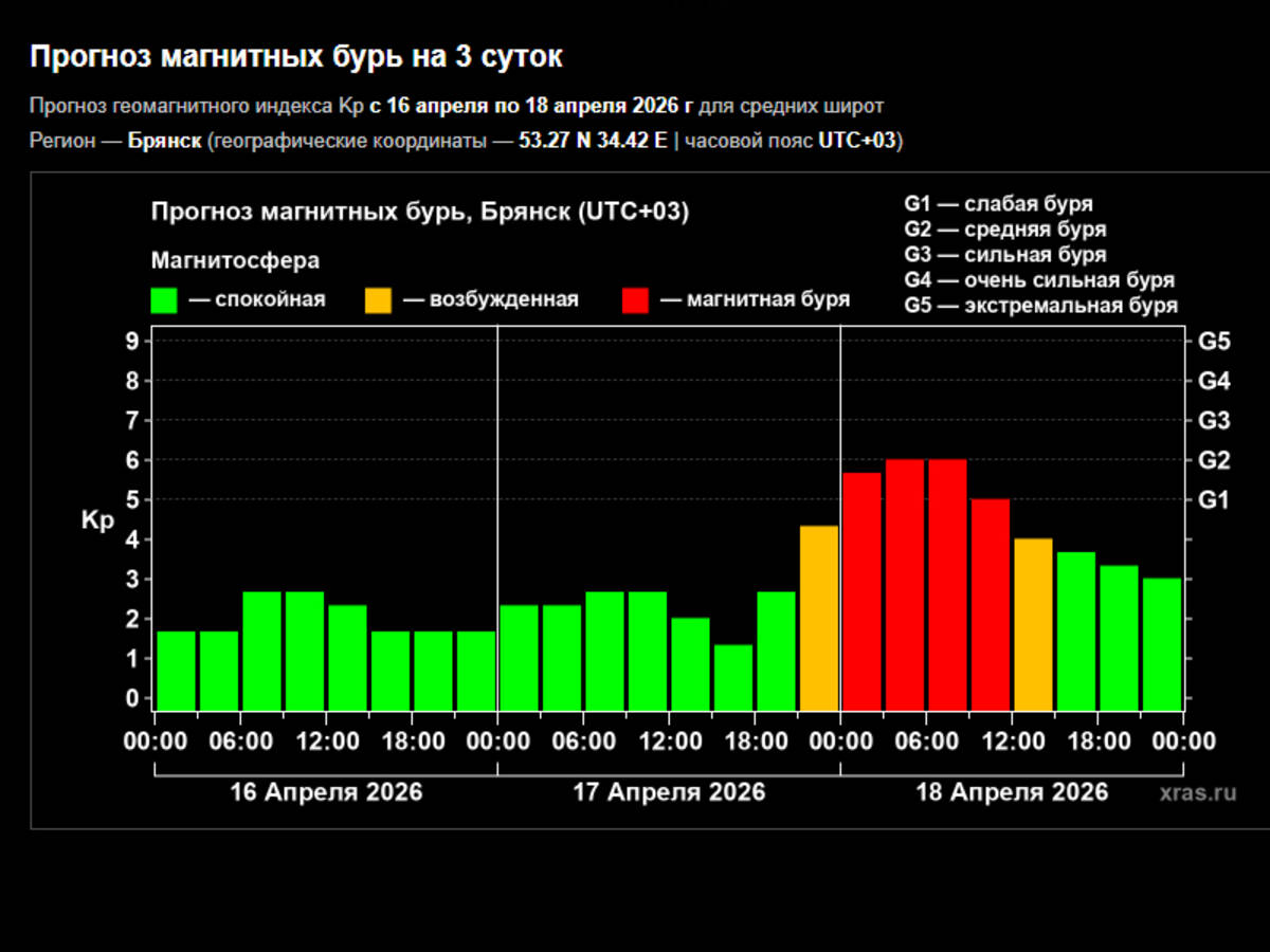 С магнитной бурей брянцы столкнутся в субботу, 18 апреля. Кр-индекс достигнет 6.