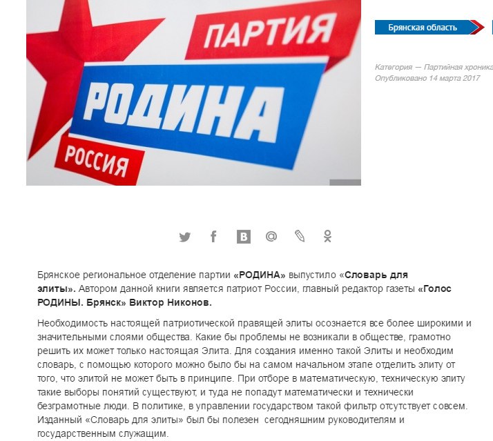 Брянское региональное отделение партии «Родина» выпустило «Словарь для элиты».