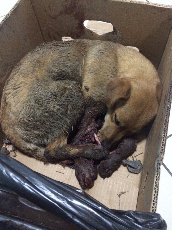 Как сообщает на страничке "Подари надежду", собаке была оказана экстренная помощь. У него переломаны передние лапы, малыш потерял много крови.