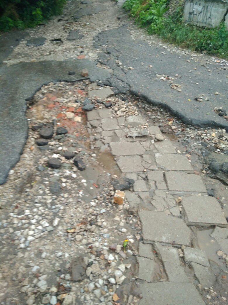 Дожди вымывают с дороги последний асфальт и щебень. Особенно это становится заметно после ливней, подобного тому, что прошел 14 августа.