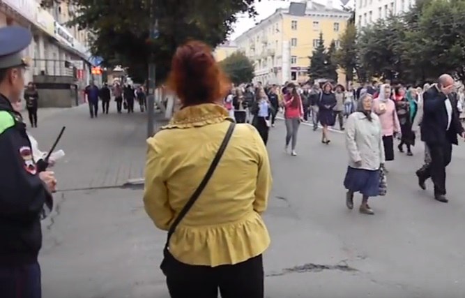 Он снял на видео тех, кто шел вместе с верующими. Среди них были студенты, казаки и чиновники.