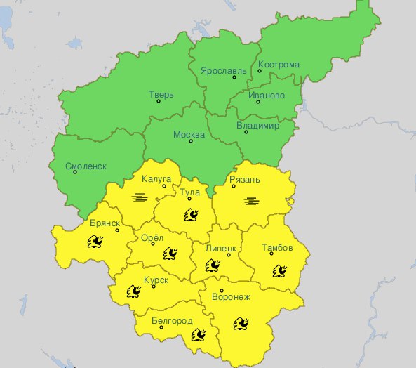 К слову, такой же уровень опасности действует в соседних Калужской, Орловской и Курской областях.