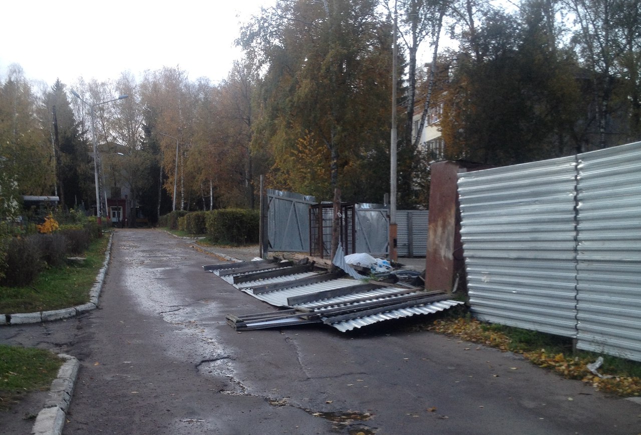 Там ураган повалил забор из профильного листа. Также очевидцы сообщают о том, что в центре Брянска от сильного ветра упала витрина.