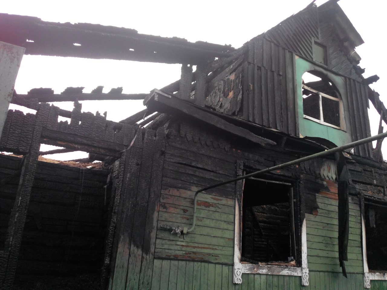 Несмотря на то что дом тушили всю ночь, из-за большого количествого опилок в строении через 2 дня он загорелся вновь.