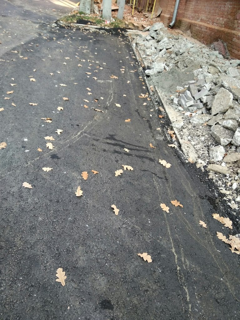 Она уверена, что рабочие укладывали старый асфальт, который сняли и перемолотили в крошку.