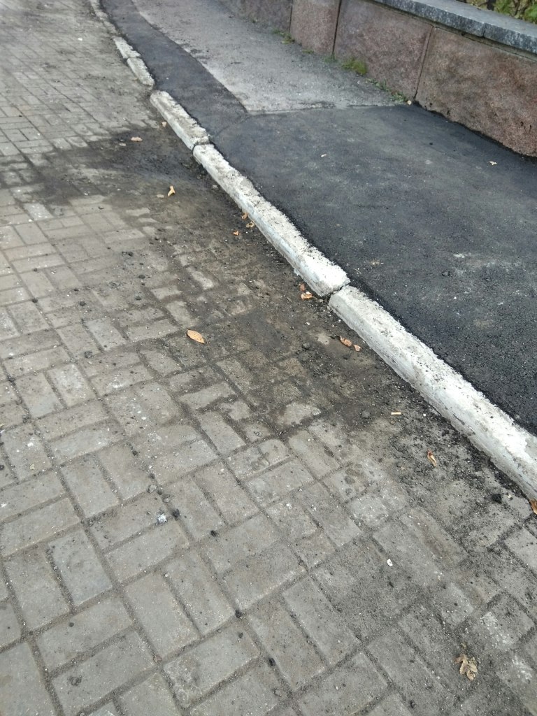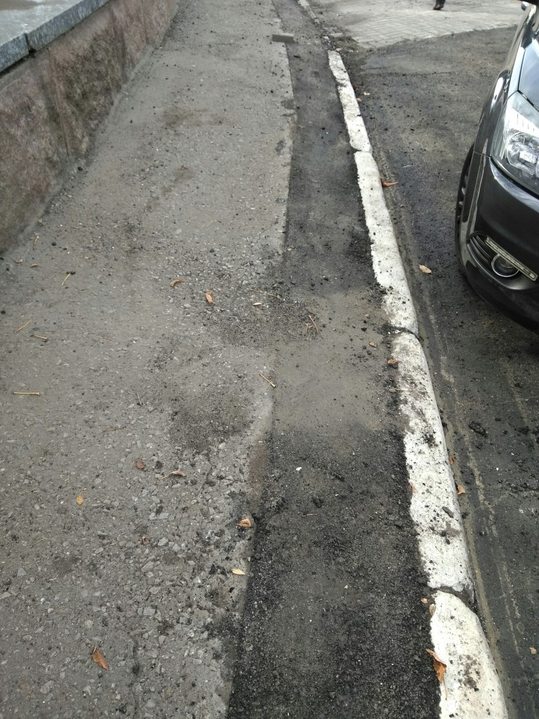 — Асфальтовое покрытие неоднородное, неровное, безобразно выполнены стыки полос, дорожку вокруг парка зачем-то срезали возле бордюра и уложили возле бордюров новым асфальтом.