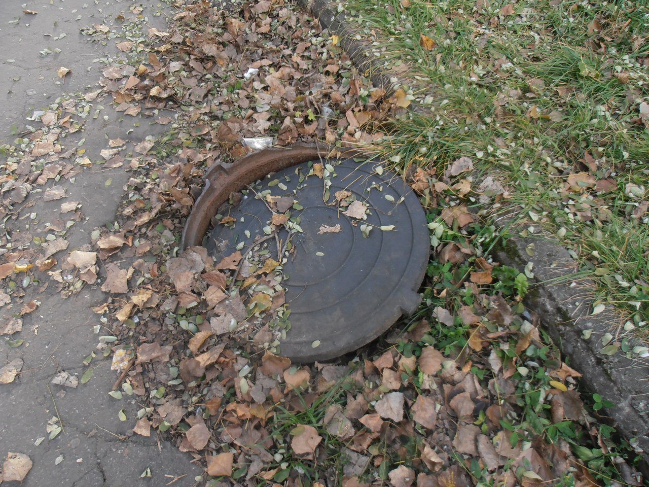 А по дороге к детской больнице - полуоткрытый люк.