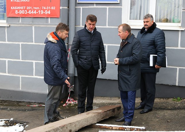 Глава Брянской городской администрации Александр Макаров, глава города Александр Хлиманков, глава Советской районной администрации Алексей Колесников, председатель городского комитета по ЖКХ Игорь Гинькин, представители подрядных организаций провели выездное совещание на набережной.