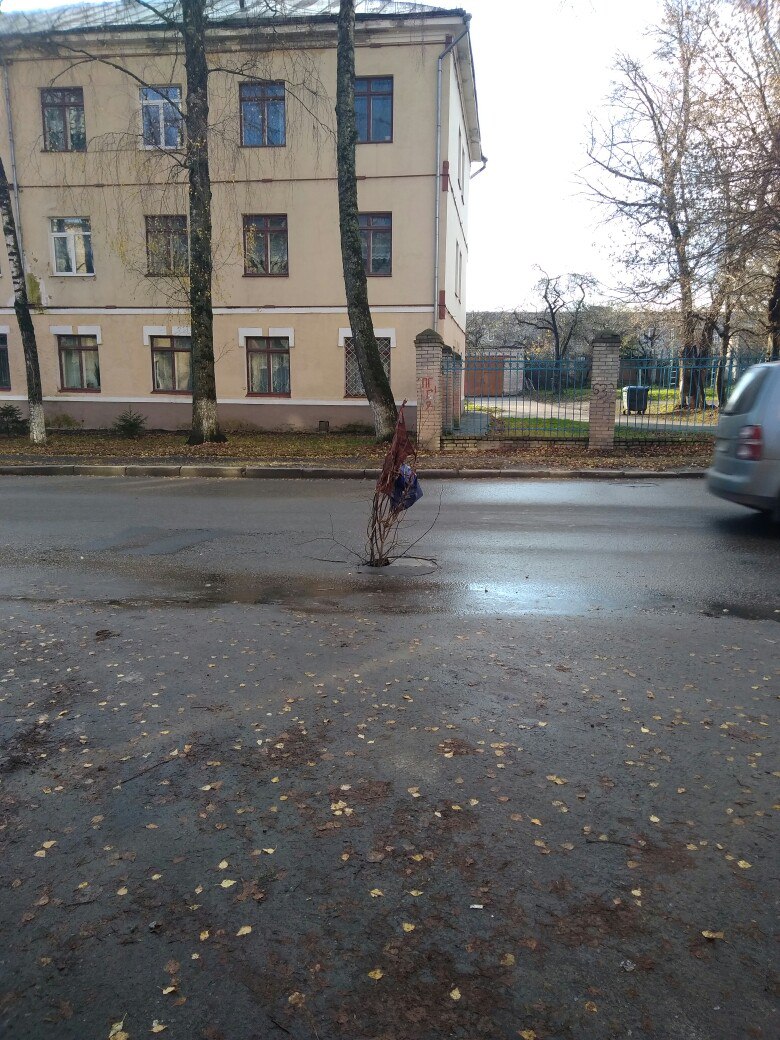 Чтобы этого не допустить, кто-то из горожан поместил в дырку большой куст.