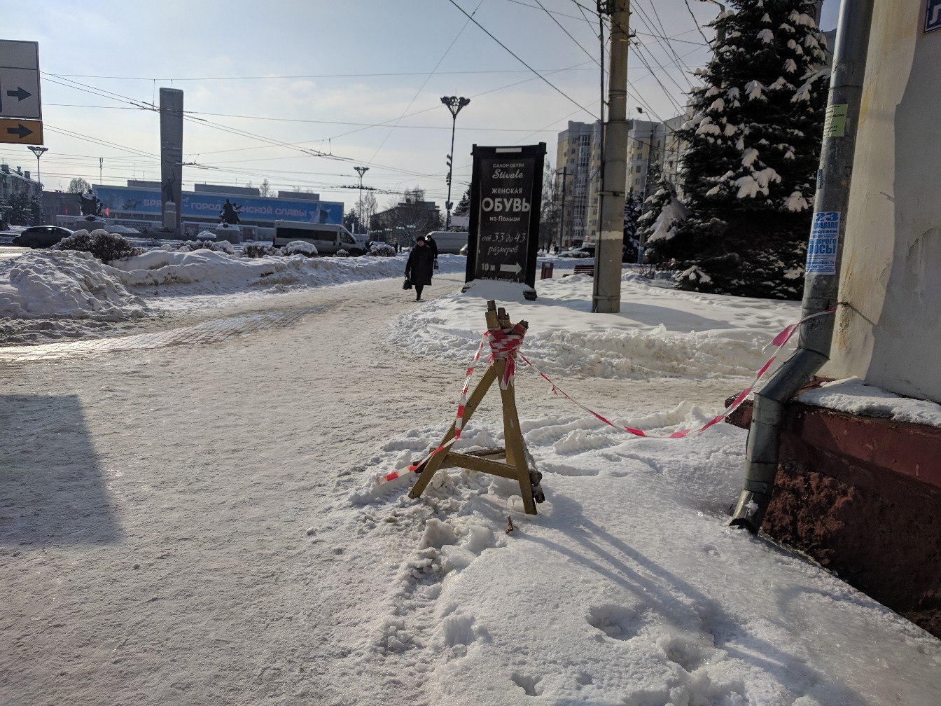 Интересно, что пару недель назад блоггер Чернов обратил внимание, что работники ТЦ «Галерея» с помощью ленточек решили проблему нечищеного снега.