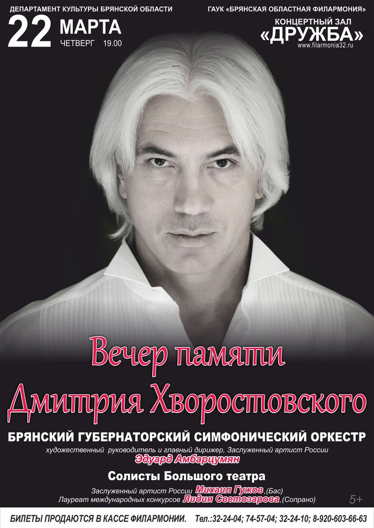 В Брянске 22 марта в 19.00 будут вспоминать легендарного певца Дмитрия Хворостовского.