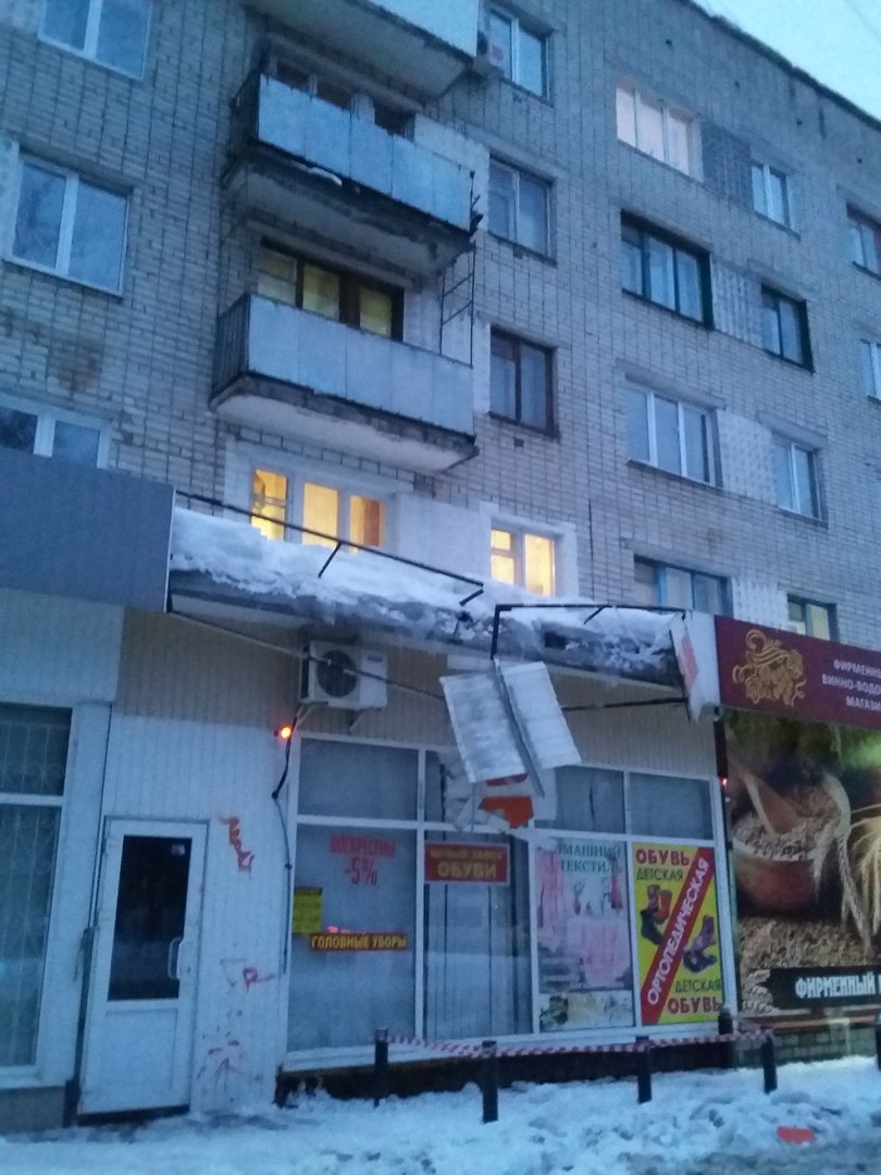 - Чаще смотрите наверх, когда ходите возле домов, - написала автор публикации Екатерина. Девушка рассказала, что наледь слетела с крыши и разбила козырек магазина. Однако пользователи предполагают, что глыба рухнула с балкона.