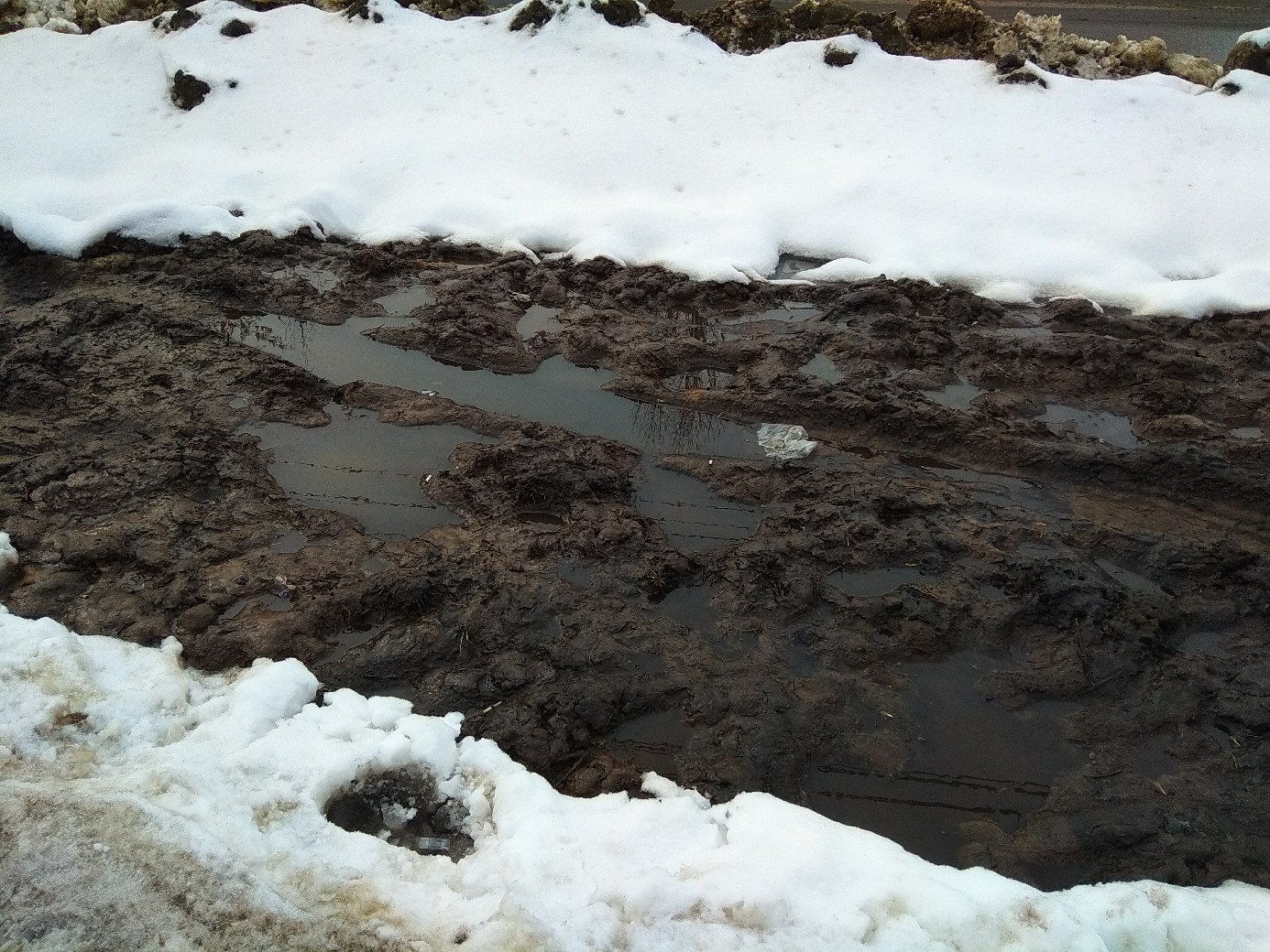 - Это настоящий квест для пешеходов - пройти и остаться чистым там практически невозможно! Месиво находится прямо по центру тротуара, - возмущается наш читатель. - А ведь еще снег не растаял, страшно даже подумать, что там будет, когда в город, наконец, придет весна!