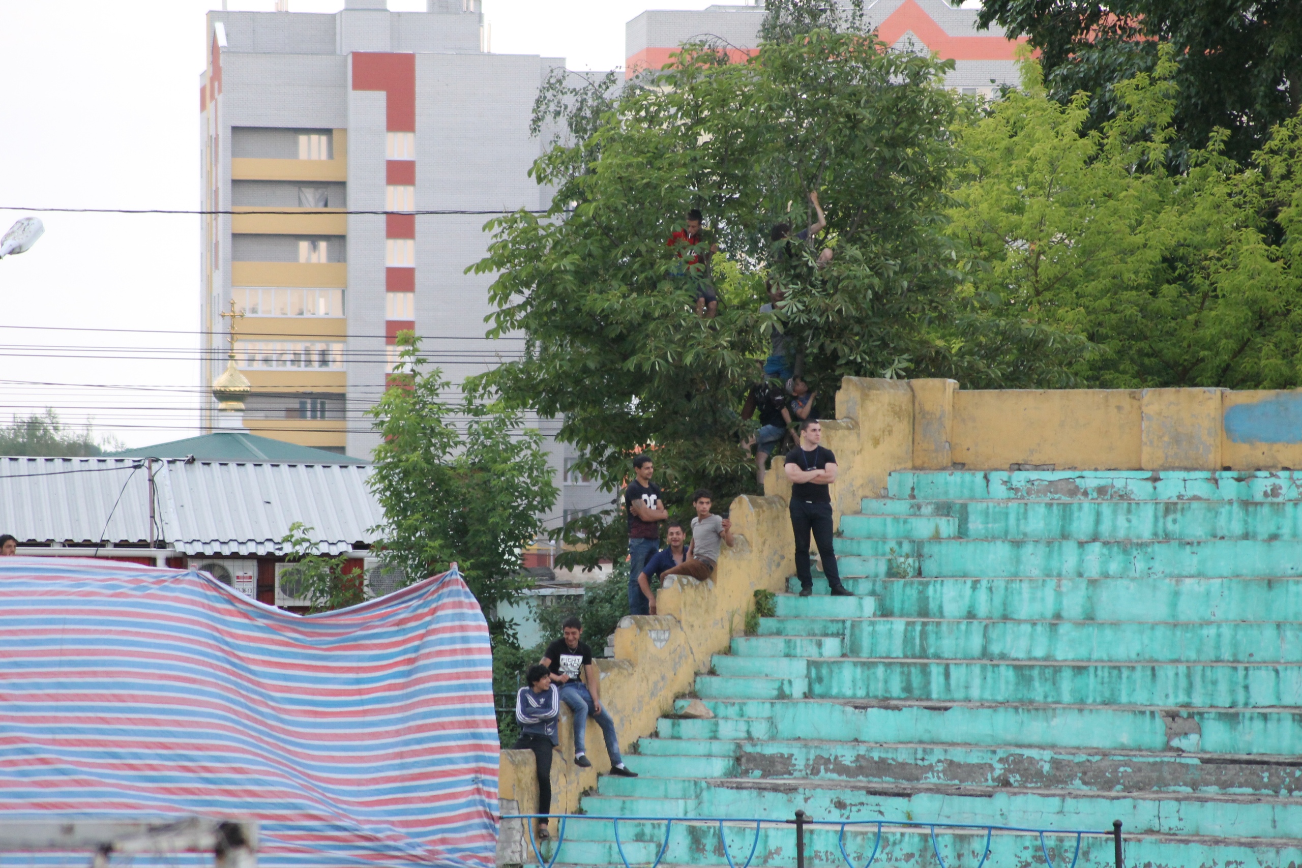 Среди них было и немало детей. Один из читателей «БрянскToday» обратил внимание, что некоторые подростки подвергли себя серьезной опасности. Они забрались на арку стадиона и оттуда наблюдали за ярким зрелищем.