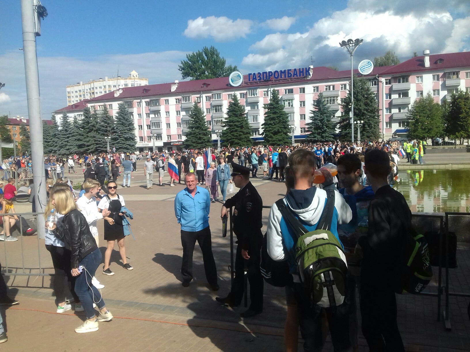 Как мы уже сообщали, сегодня, 25 июня, в рамках чемпионата мира по футболу состоится матч между сборными России и Уругвая. В Брянске трансляцию игры в данный момент можно посмотреть на площади Партизан. У краеведческого музея организовали фан-зону, в которой установлен большой экран.