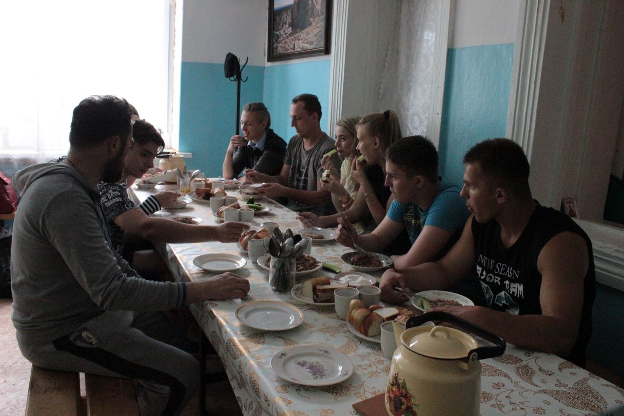 После этого послушник Феодосий провел беседу с участниками проекта на духовно-просветительскую тематику. В ходе раскопок ребята нашли крепежный элемент стены. Он пополнил коллекцию найденных исторических предметов.