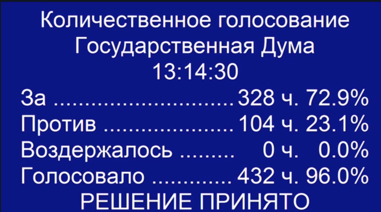 Во время сегодняшнего заседания реформу поддержали 328 депутатов. Против проголосовало 104 - это представители партий КПРФ, ЛДПР и «Справедливая Россия».