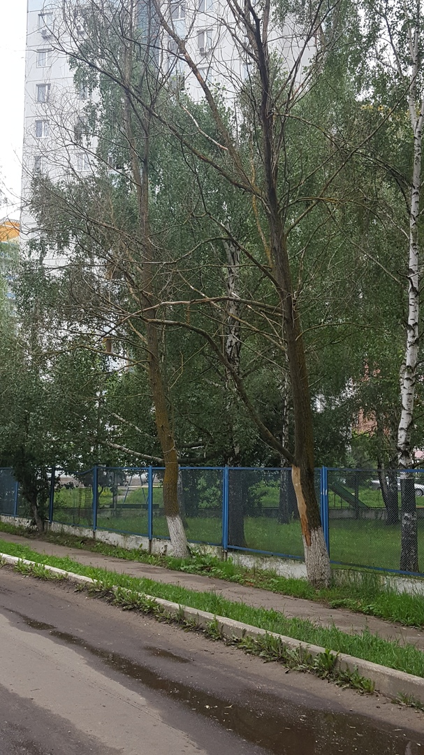 По словам местных жителей, при сильных ветрах сучья и кора летят в разные стороны. Ежедневно опасности подвергаются десятки малышей и их родителей, которые идут в дошкольное учреждение.