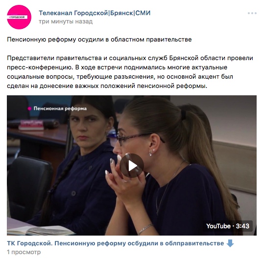 Забавную помарку допустили работники телеканала «Городской». На своих страницах в соцсетях в новости про обсуждение в правительстве региона пенсионной реформе в слове «обсудили» пропущена буква «б». В итоге смысл фразы несколько поменялся.