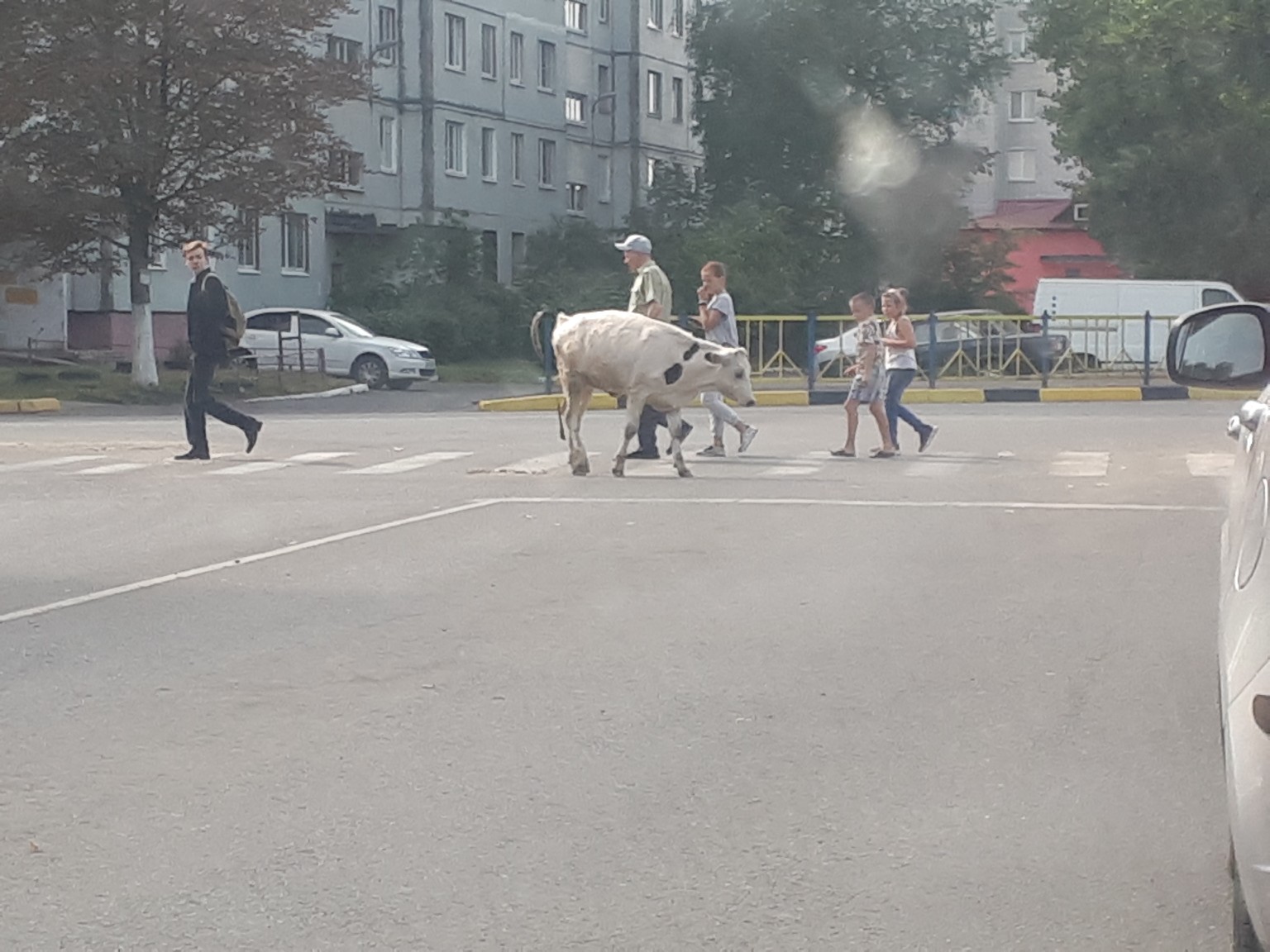 - Буренка по переходу идёт, ничего не нарушает, – похвалили теленка горожане и тут же раскритиковали земляков, нарушающих Правила дорожного движения.