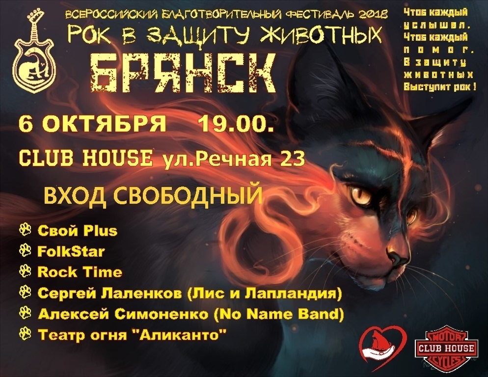 Брянск присоединился к всероссийской благотворительной акции «Рок в защиту животных».