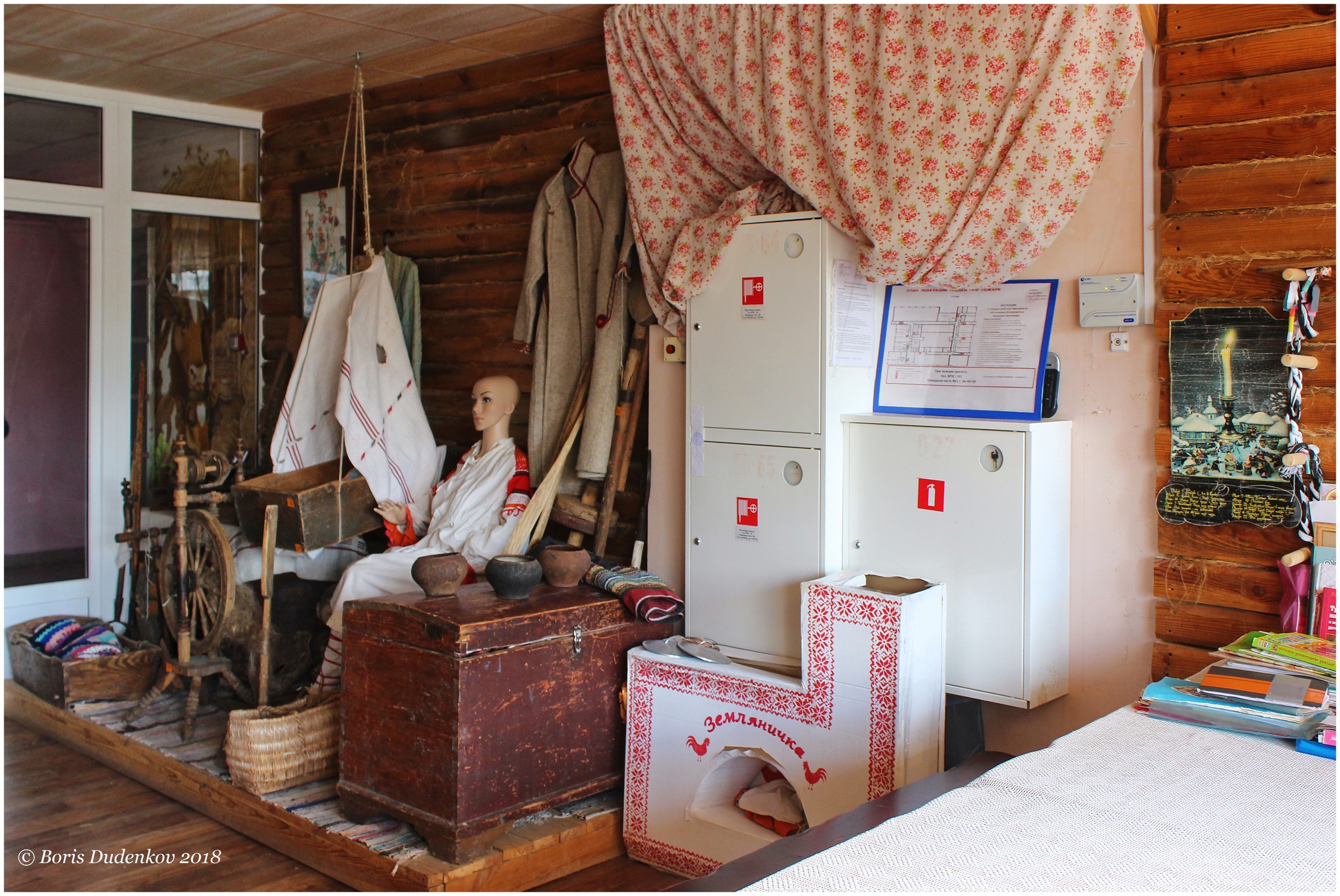 В числе прочего гостям продемонстрировали и небольшой уголок деревенского быта. В экспозиции в фоторепортаже Бориса Дуденкова обращает на себя внимание образ деревенской девушки - молодой мамы.