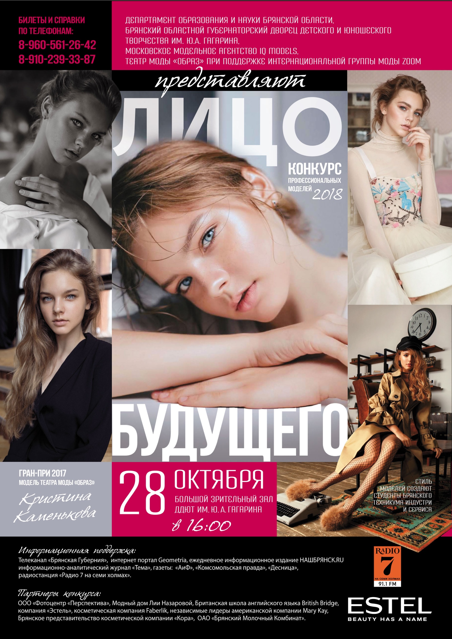 В Брянске в воскресенье, 28 октября, состоится очередной конкурс красоты. На этот раз в областном центре будут выбирать «Лицо будущего-2018». Мероприятие начнется в 16.00 во Дворце имени Гагарина.