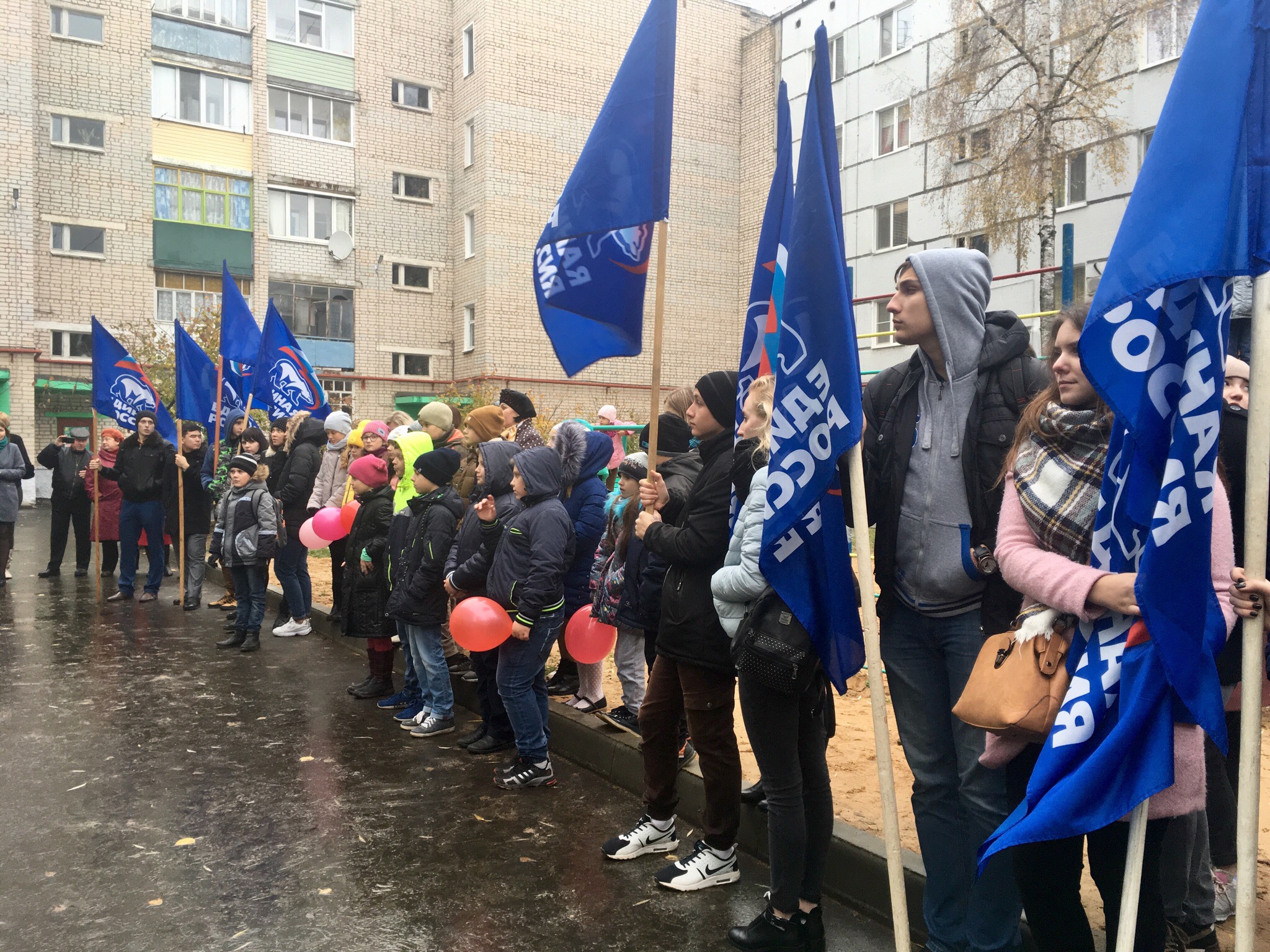 Впрочем, отсутствие своего тотемного животного единороссы компенсировали партийными флагами, которые с гордостью демонстрировали студенты местного филиала БГУ: