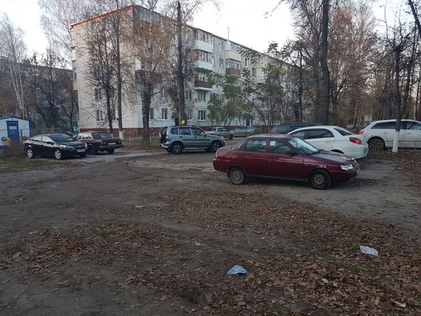 В 50 метрах от палисадника – большой двор, прекрасная потенциальная площадка. Но территория не благоустроена, залита лужами, заставлена машинами.