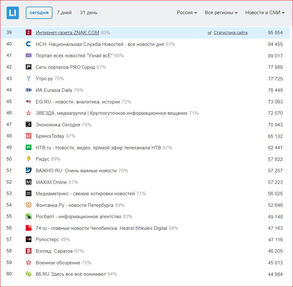 Мы обгоняем известные федеральные интернет-СМИ, в том числе сайты Росбалт, Фонтанка, телеканалов НТВ, Дождь. Отметим, что большинство пользователей пришли из других регионов. Тем не менее, БТ по прежнему держит уверенное первенство в рейтинге брянских читателей.