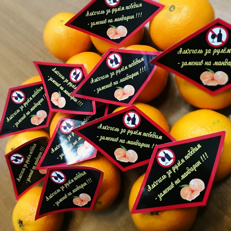 Ребята подарили водителям мандарины со стикерами. В свою очередь полицейские напомнили о правилах дорожного движения и ответственности за их нарушение.