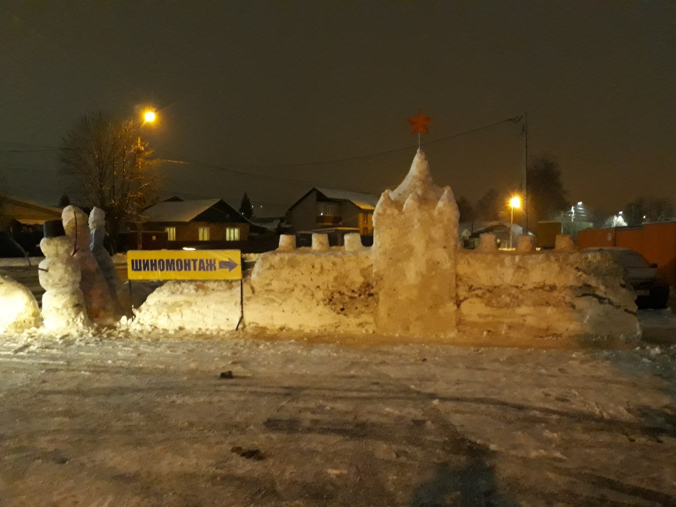 Снежная погода вдохновила брянцев на создание необычных фигур. На улице Карачижской у шиномонтажи появился целый городок, который охраняют странные обитатели.