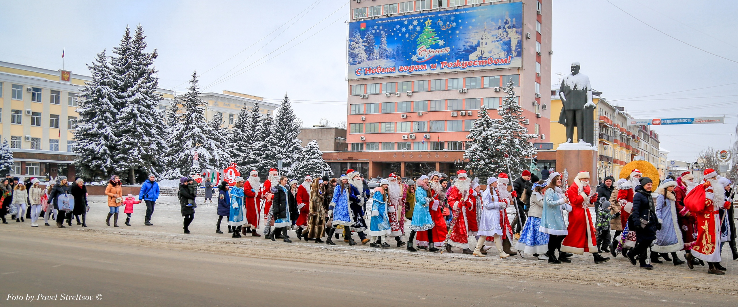 Сегодня, 25 декабря, в центре Брянска состоялся традиционный парад Дедов Морозов и Снегурочек. На Театральной площади участники - в основном студенты и школьники - демонстрировали свои творческие номера и получали заслуженные награды.