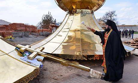 Торжественная церемония установки куполов и креста, на которой присутствовали Николай Денин, председатель облдумы Владимир Гайдуков, руководители строительных фирм и других компаний Брянщины, прошла сегодня в Успенском Соборе. После того как они были установлены, строители могут приступить к внутренней отделке.