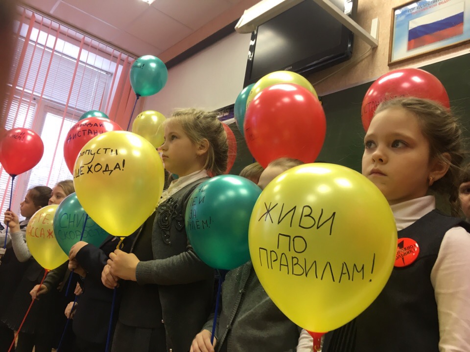 Участники акции вручили пешеходам и водителям шарики с надписями «Соблюдай дистанцию», «Не пей за рулем», «Пропусти пешехода», «Проверь тормоза», «Купи автокресло» и другими.
