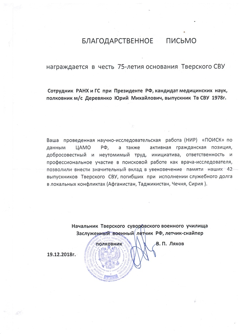В Твери накануне 30-летия вывода советских войск из Афганистана на фасаде административного корпуса Тверского военного суворовского училища открыли мемориальный памятник на котором увековечены имена 42-выпускников военного учебного заведения, погибших при исполнении служебного долга в локальных конфликтах и войнах.