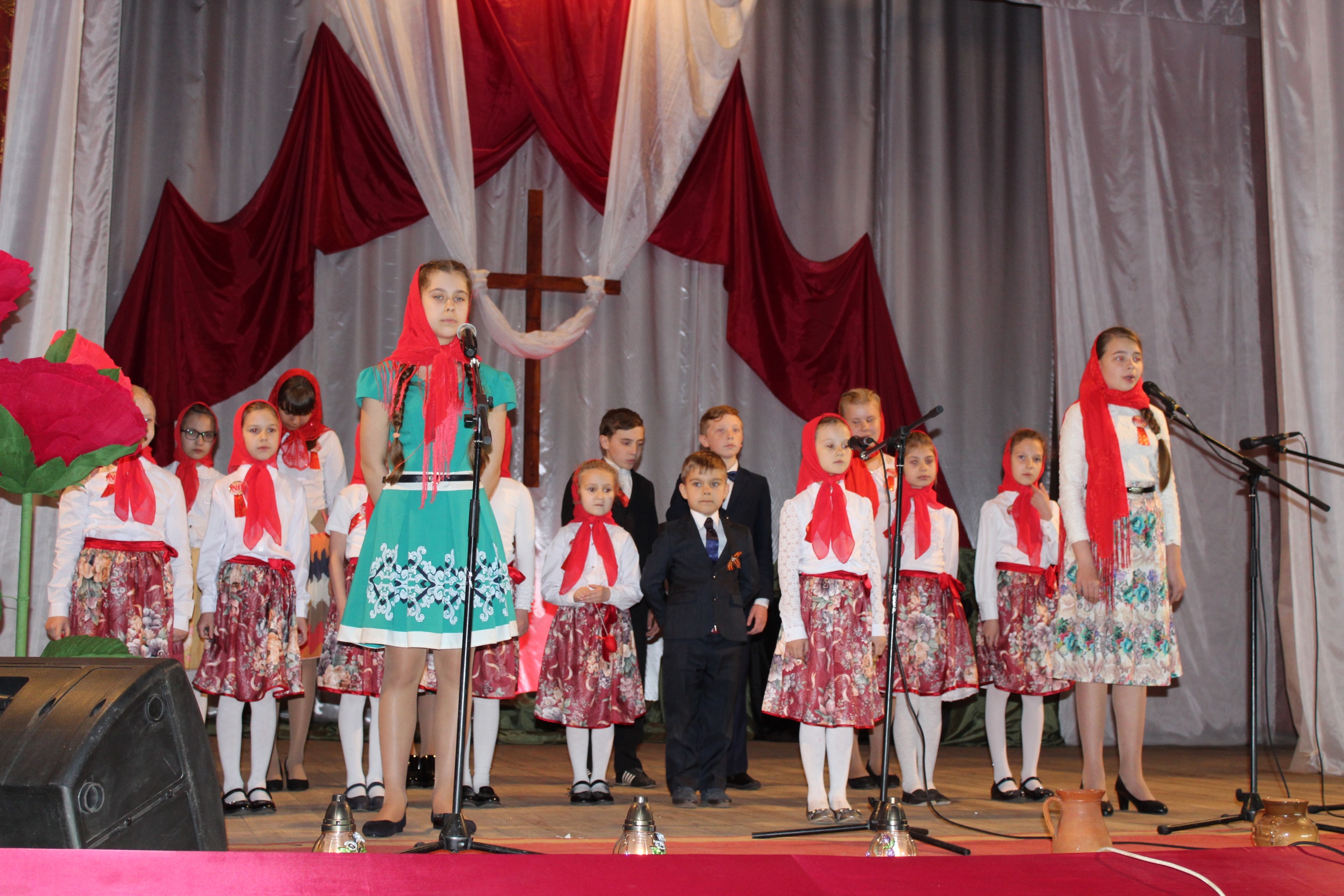 Ребята приветствовали своих друзей, желали всем мира и добра, пели о любви к России, поздравляли всех с наступившей Пасхой, дарили пасхальные яйца взрослым и сувениры своим сверстникам. Иерей Андрей Масленников отметил, что важно воспитывать молодое поколение в уважении и почитании к ближним, благословил всех присутствующих в зале.