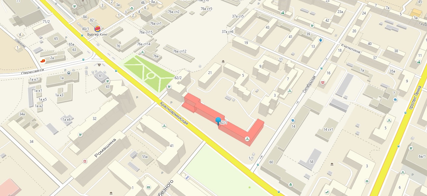 Мария,это пристройка к дому Красноармейская, 62/1,её адрес Красноармейская, 62/2,шлагбаум незаконен,т.к.двор не в собственности жильцов,налоги не платят.Они паркуются так,что в соседние дворы пройти трудно,паркуются по-хамски и во дворе соседнего дома Ромашина,21.Но мы шлагбаум не ставим-это незаконно.[/quote]
